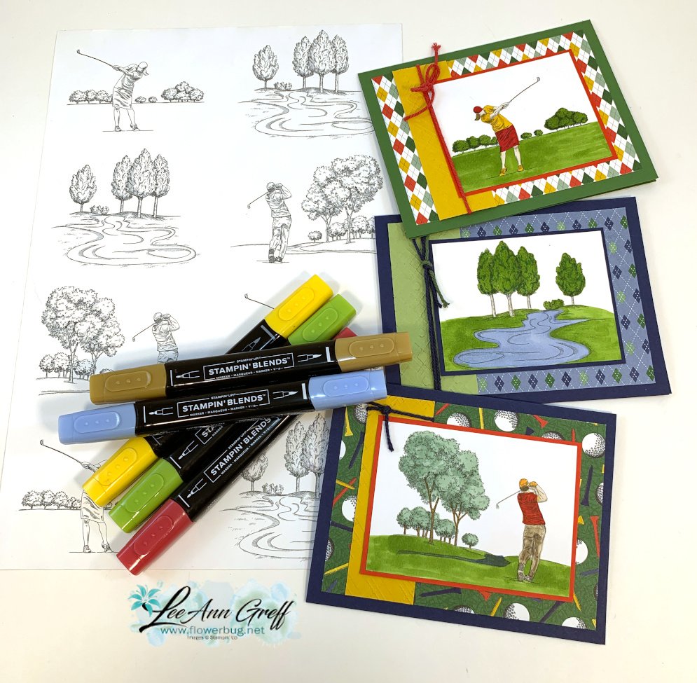 I have some friends who are seriously into golfing!  They golf almost daily in Arizona.  So I knew I had to send her some cards made with this Country Club designer series paper.