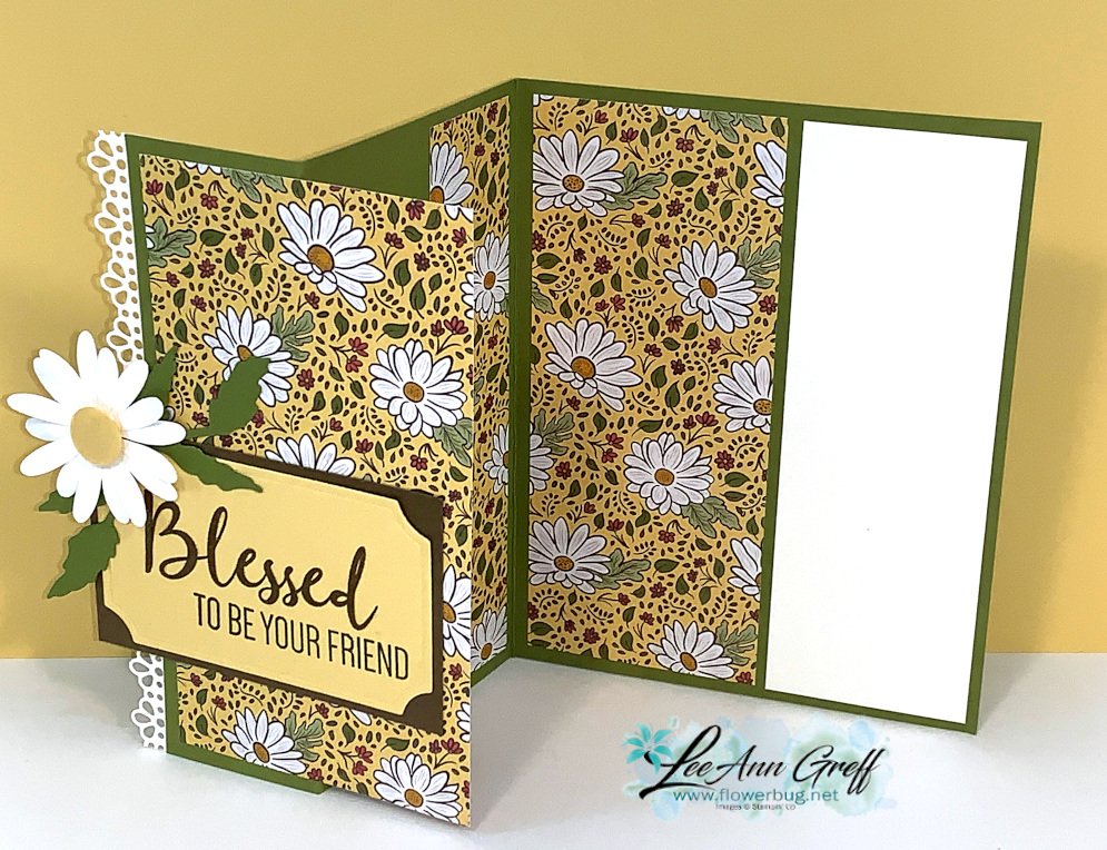 Look at this cute fun fold card!  See how the paper matches up across the three panels?  So clever! **Watch the video here on Facebook.