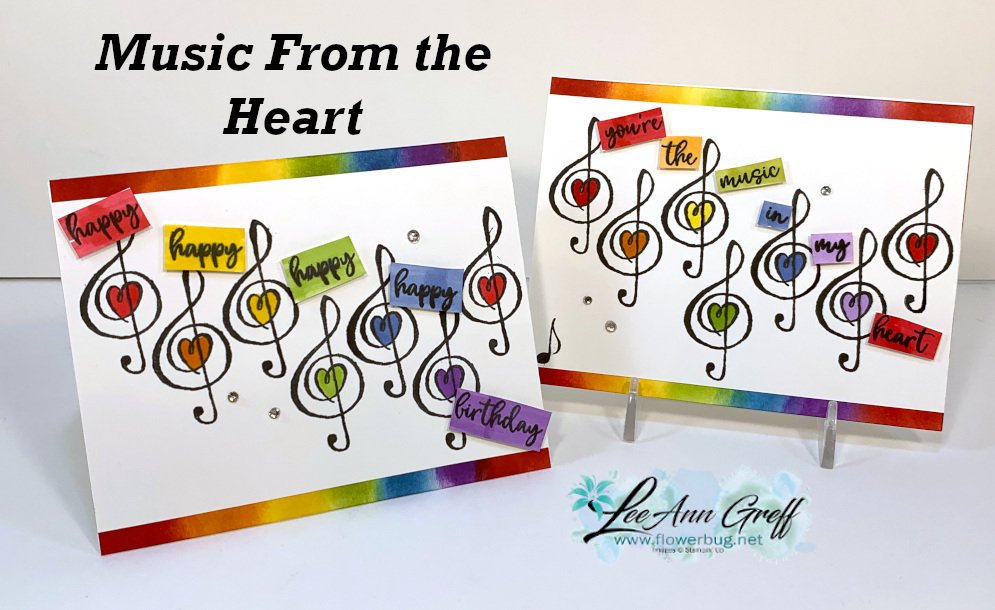 I saw a card like this online made by Diane Barnes and had to make it for my friend Becky's workshop a few weeks ago.  She loves color!  It's made with the Music From the Heart stamp set seen here.   It's just $17!