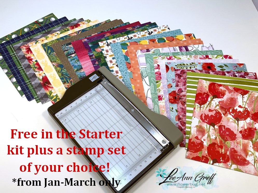 4. Choose any FREE stamp set when you purchase the Starter kit during Sale-a-Bration; of any value! Plus you'll get a free paper trimmer and a 6 X 6 sampler of new Designer Paper!  It's just $99 plus tax; shipping is free!  Click here to join my awesome Flowerbug's Team!