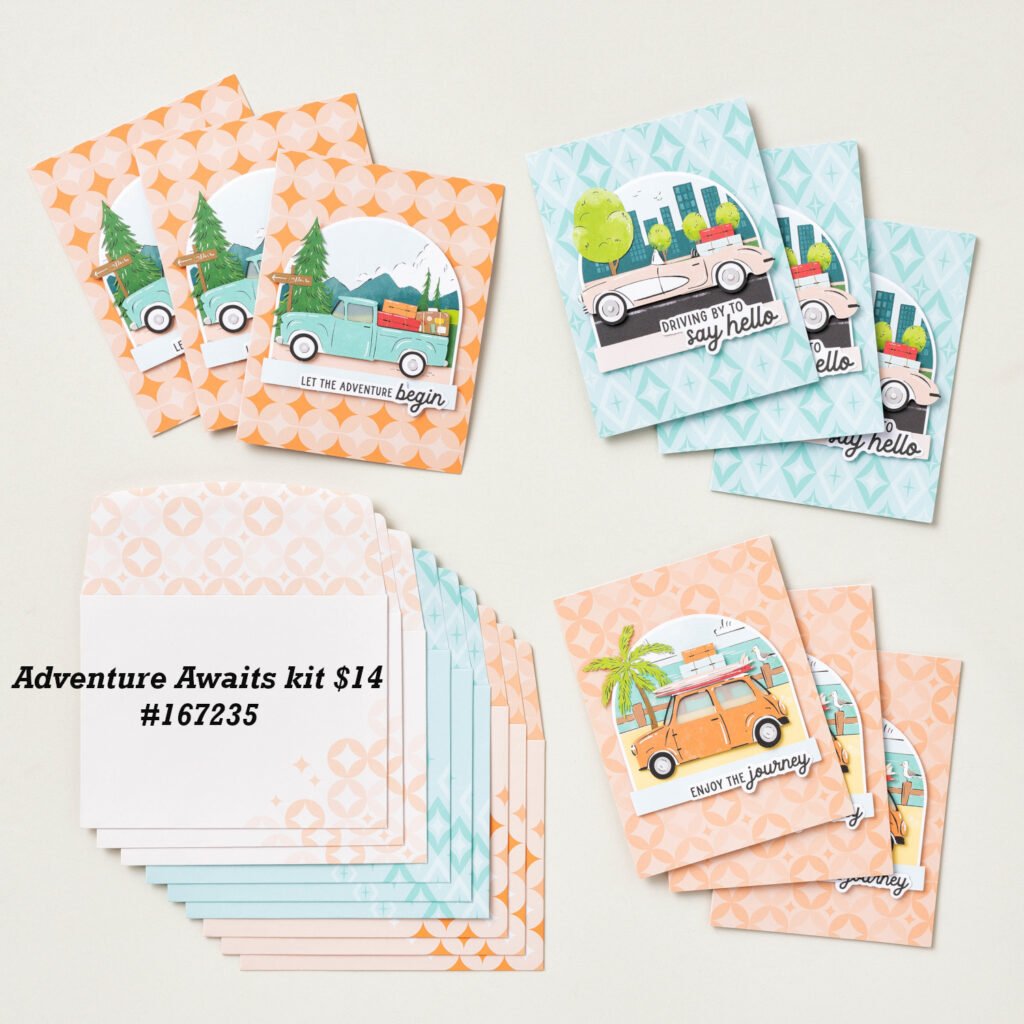 First is the Adventure Awaits kit. Retro cards with fun retro vehicles! It’s always great to have cards on hand for the guys too right?
