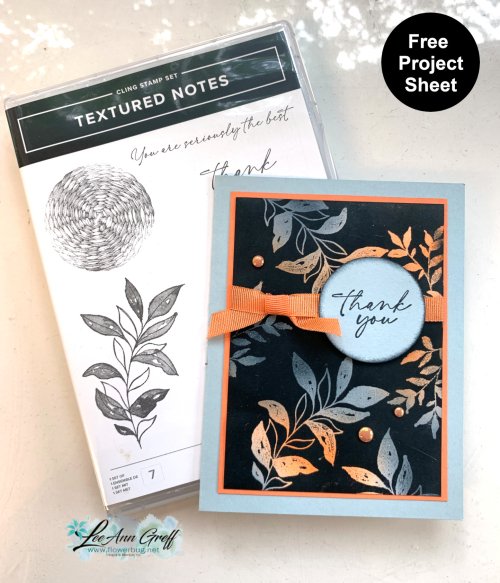 Here’s the free project sheet for this pretty card. Click on the following link to print or download it.  Download Textured Notes Joseph’s Coat technique