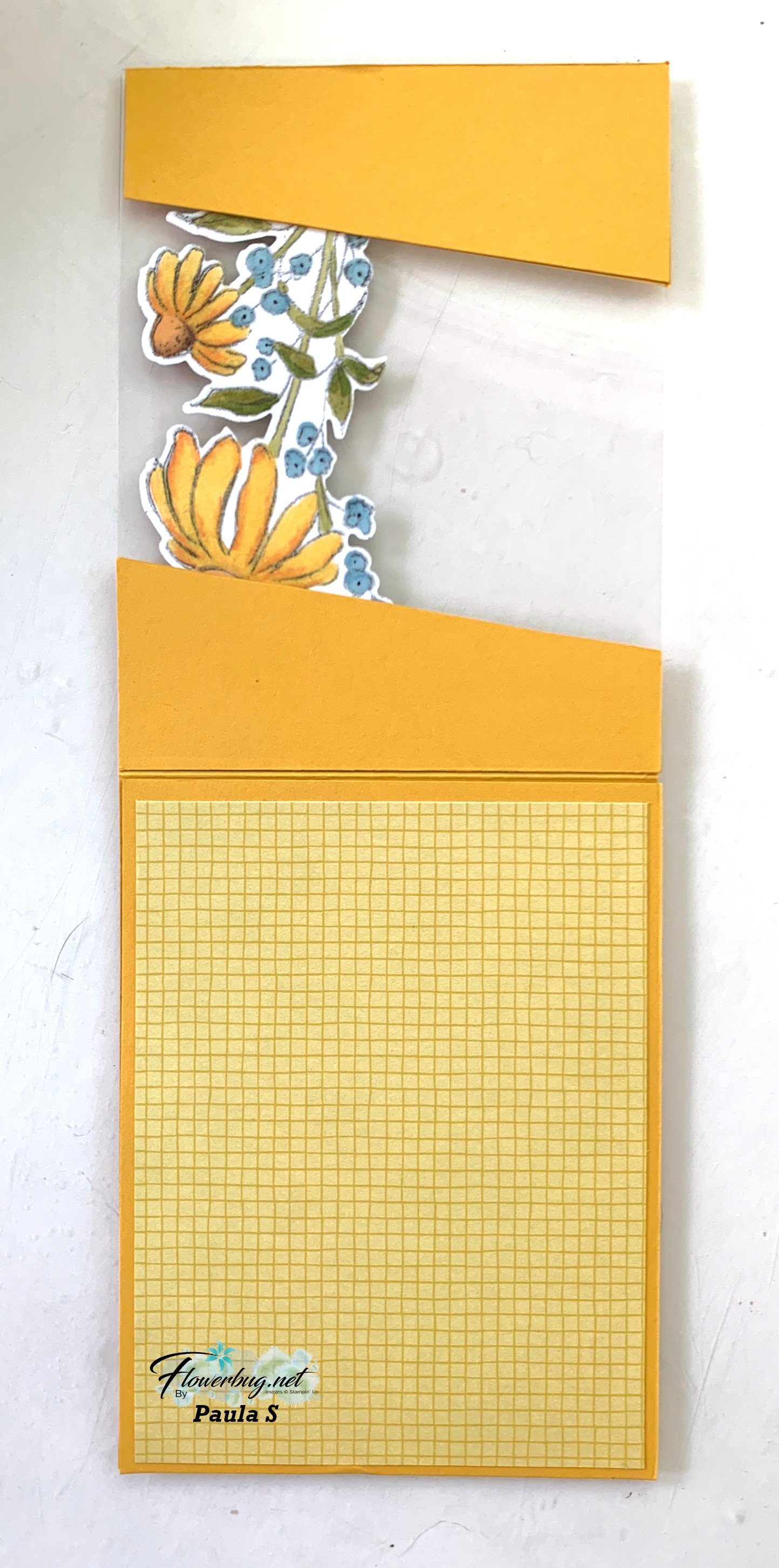 This card is called a 'Joy Fold' – who knows why but it's actually one fold name I haven't forgotten. Basically it has two flaps that overlap each other. It gives you multiple opportunities to use your Designer Papers or textured layers.