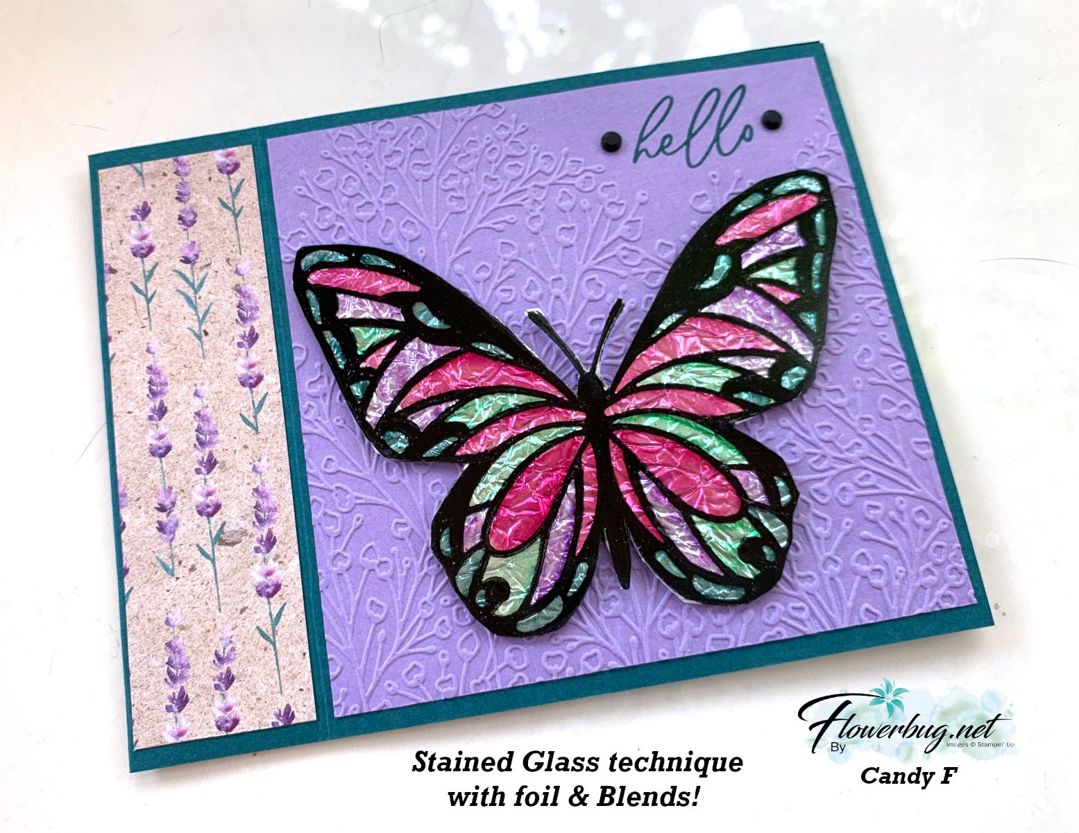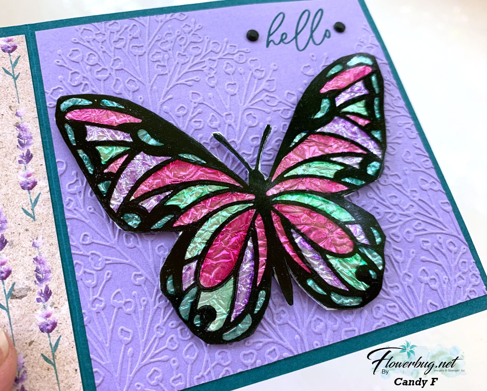 The embossing folder here is called Glass & Gardens seen here.  It's unavailable right now but you can add yourself to the list to be notified when it's back in stock.