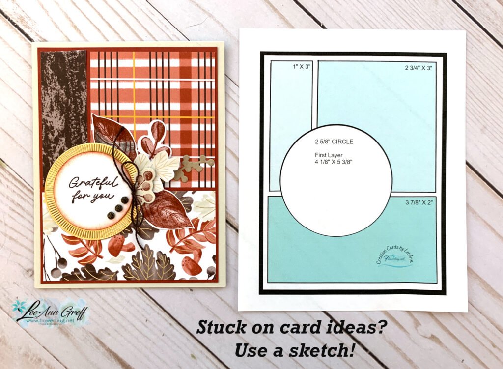 Besides the Artistic Leaves stamp set I also used the Gathering Moments bundle and the Gathering Together specialty designer paper with this sketch: