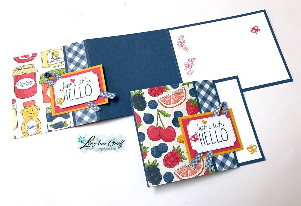 I shared this neat fun fold card on last week’s video. It is the standard size card but shows off your designer paper so nicely.