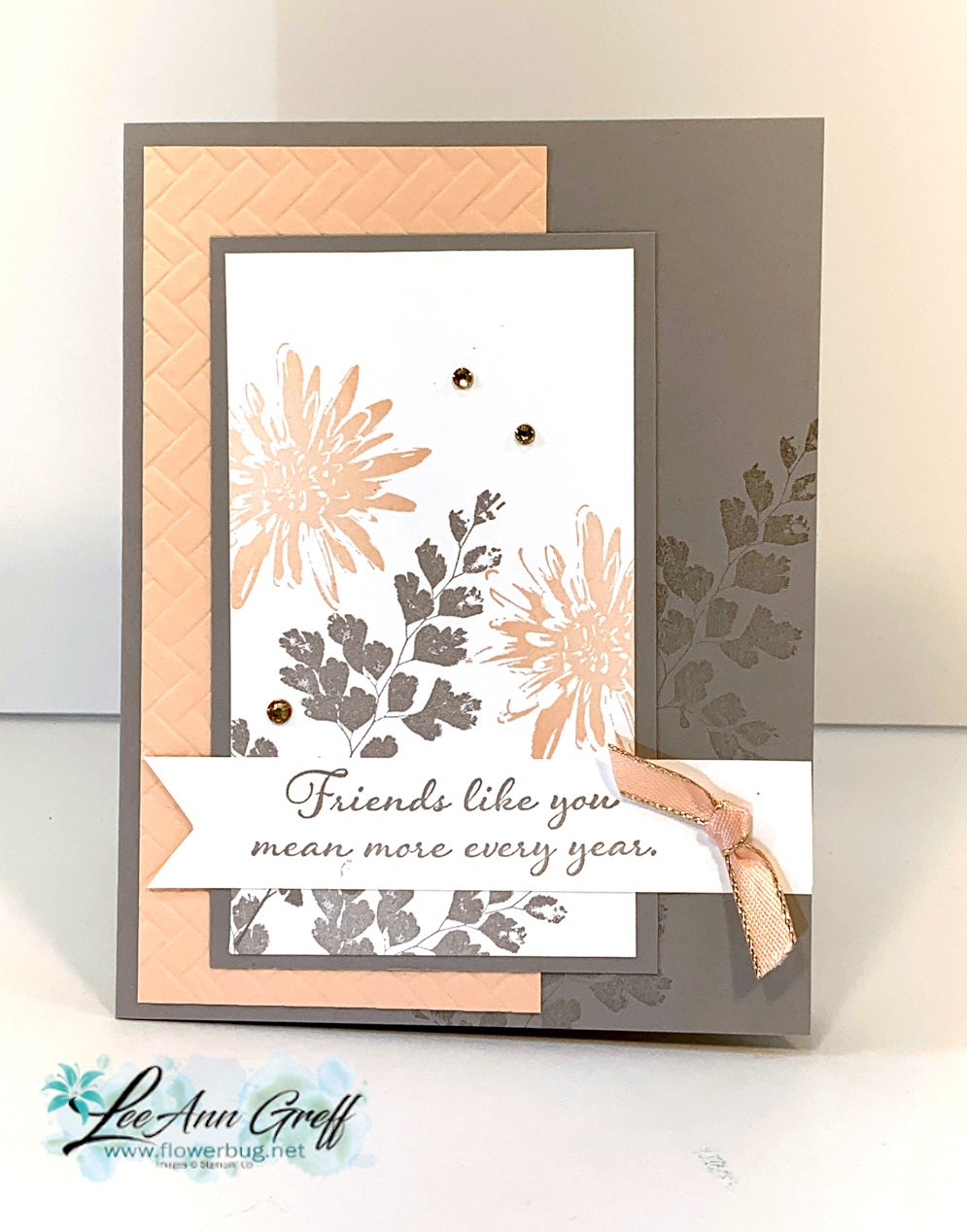 Isn’t it pretty? My colors include Pecan Pie with Basic Beige and a small strip of the Nature’s Walk designer series paper.