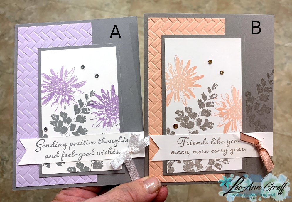 The stamp & dies bundle is called Nature’s Symphony. The textured triangle is the new Stone & Vine 3D embossing folder. The greeting is from the new Prayer’s & Promises stamp set – it’s a wonderful new set for sympathy or thinking of you greetings. The greeting is the Labeled with Love punch seen here.