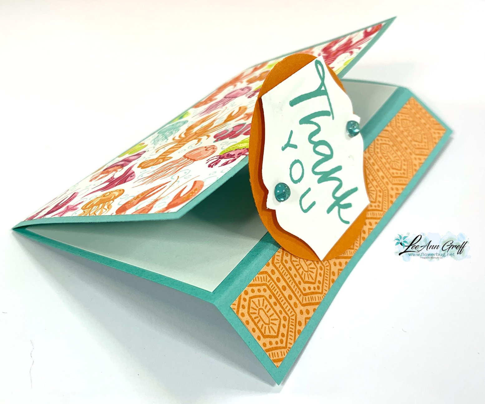 In addition, every online order will also receive a free PDF tutorial featuring the new 'Friends of the Ocean' suite. This tutorial includes fun folds and unique layouts for not only this designer paper but you can easily substitute any you already own! It will be emailed to you within a few days after an online order from my store here.