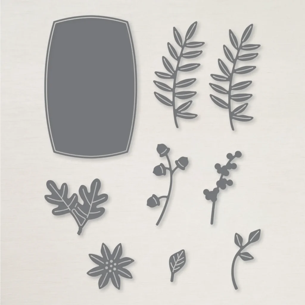 My colors include Cherry Cobbler with Pecan Pie and Vanilla. I also used the Label Me Grateful dies for the label, berries & acorn dies. See them here.