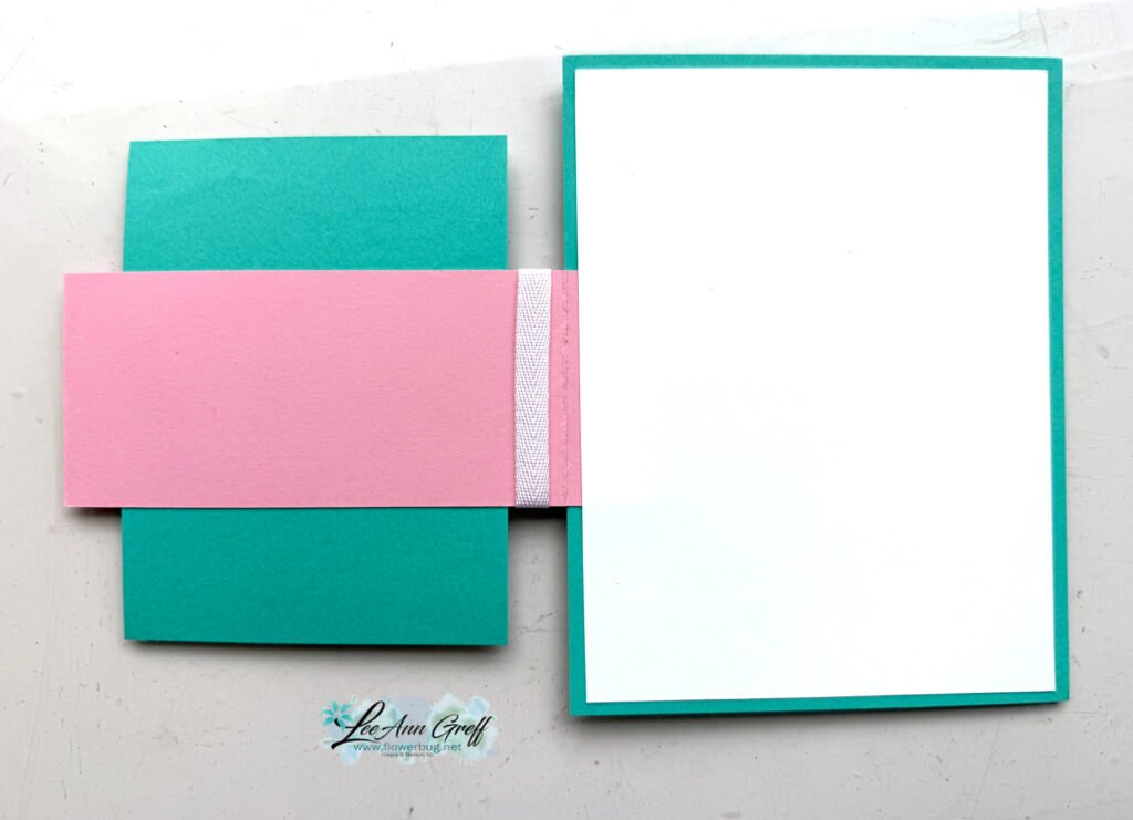 The inside White layer hides the end of the scored Pink flap. It’s a really neat and simple fun fold card. Click here to access the free project sheet.