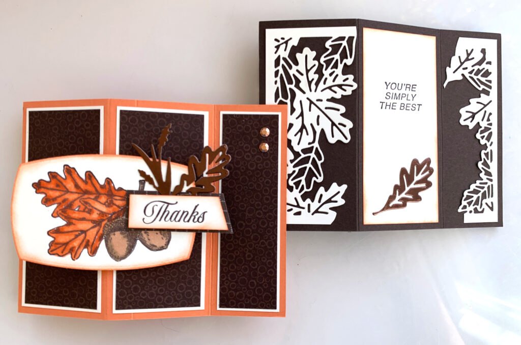 This was made with a new stamp set called Aspen Grove. You might know I have a love for tree and leaf stamp sets so this was a definite ‘yes’ on my list. I made over 20 of these for my swap! But I like making multiples of cards I love.