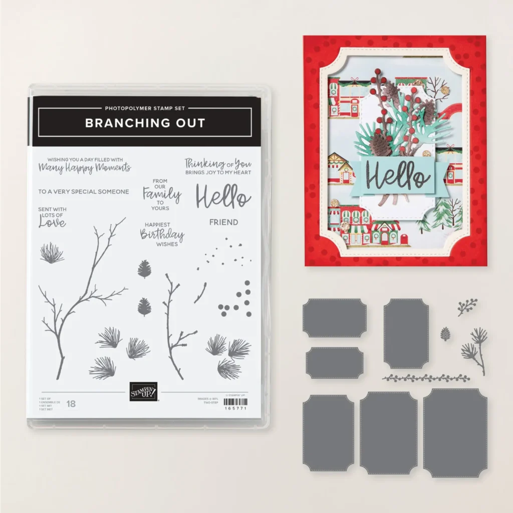 It features the new Branching Out bundle from the 2025 Holiday catalog from Stampin’ Up! See the bundle here.