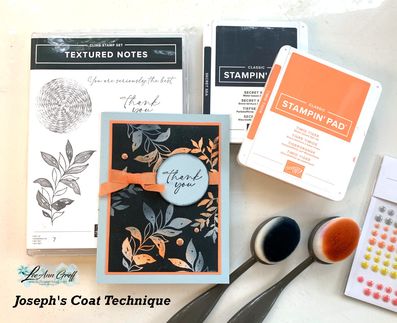 Here’s the free project sheet for this pretty card. Click on the following link to print or download it.  Download Textured Notes Joseph’s Coat technique