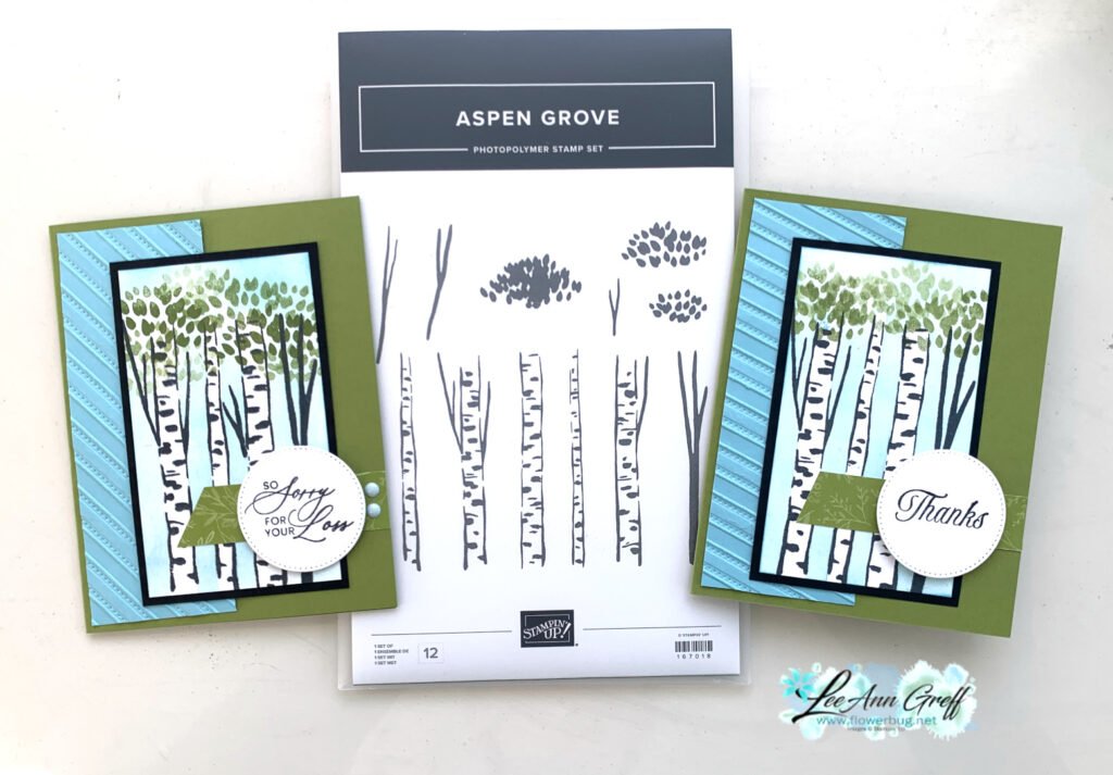 This was made with a new stamp set called Aspen Grove. You might know I have a love for tree and leaf stamp sets so this was a definite ‘yes’ on my list. I made over 20 of these for my swap! But I like making multiples of cards I love.