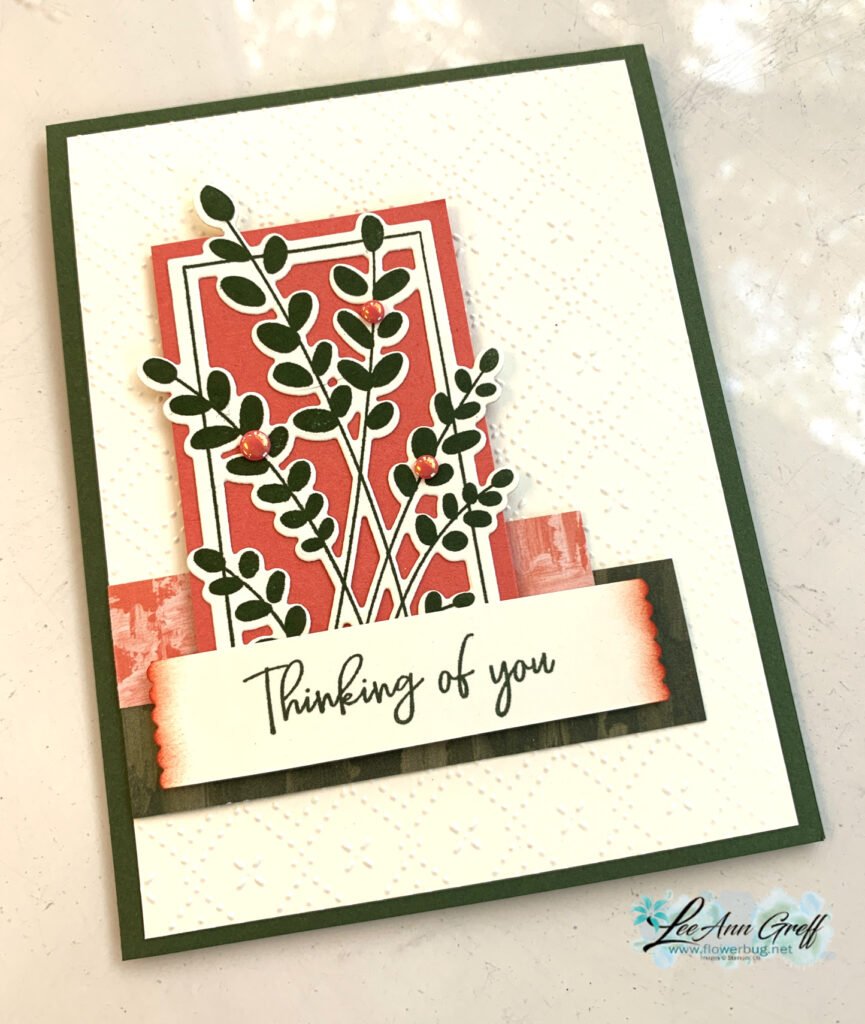 I changed up the card above to use the other coordinating die in this bundle. It cuts out the center of the foliage.