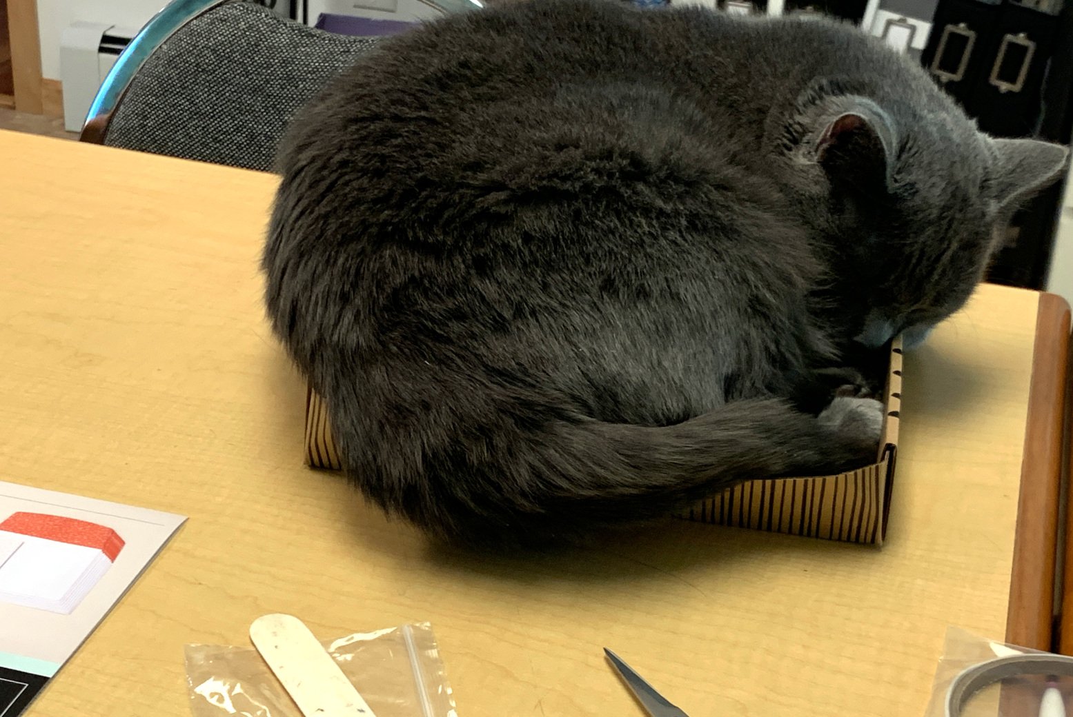 She wasn't much help but she did settle into the kit box somehow but was quite a tight fit!