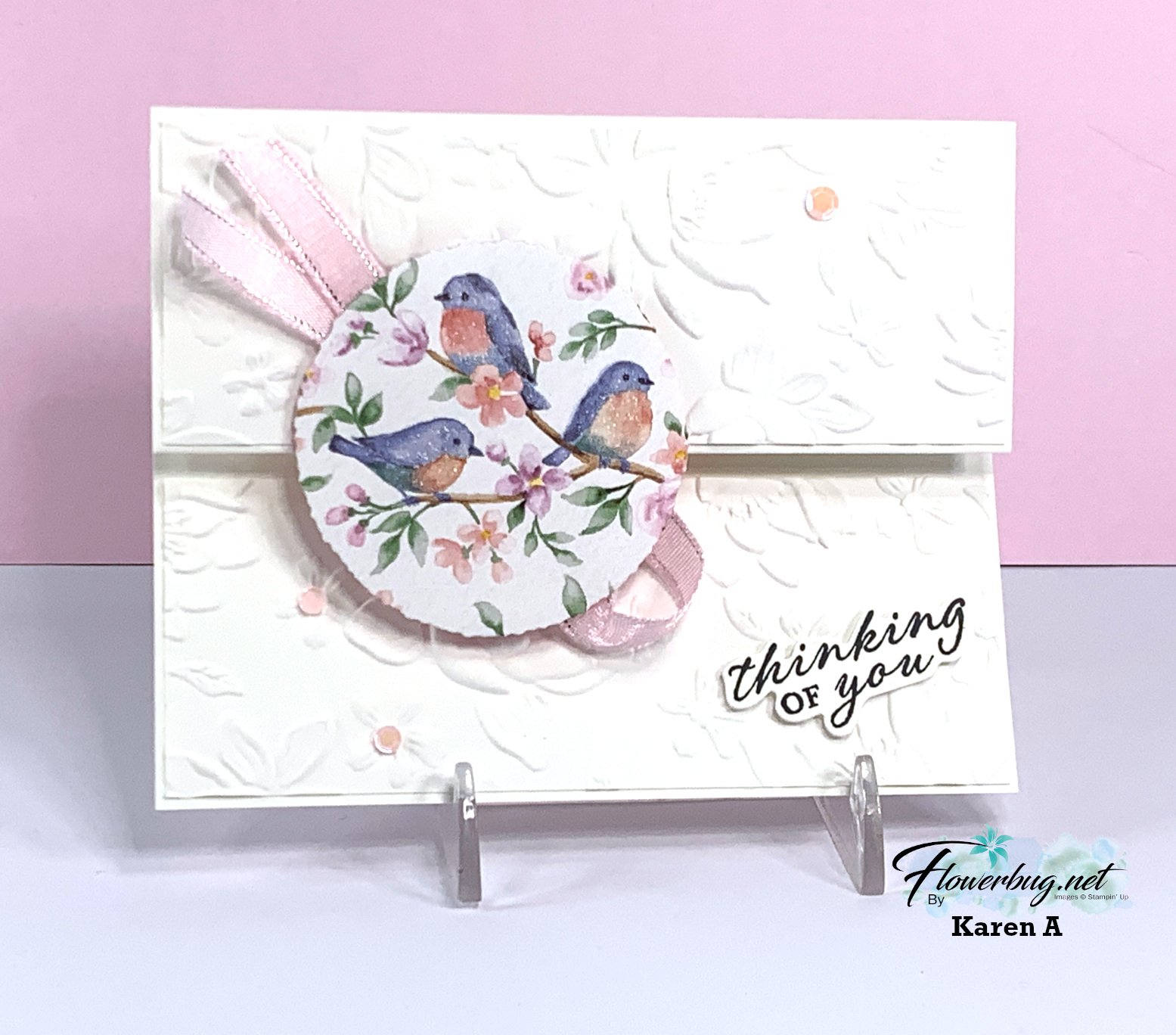 The kit includes the following: 1/2 pkg of the Cute as a Bug DSP, a share of the Ladybug Garden epoxy gems, the Old Olive rick-rack ribbon and exclusive video link. It also includes 10 pre-cut cards! Everything is cut for you except your new designer paper. You’ll use the measurements in the PDF tutorial to do that; it’s easy! Then just assemble and add your stamped images to the greeting pieces provided. (Any greetings will work; feel free to use what you have).