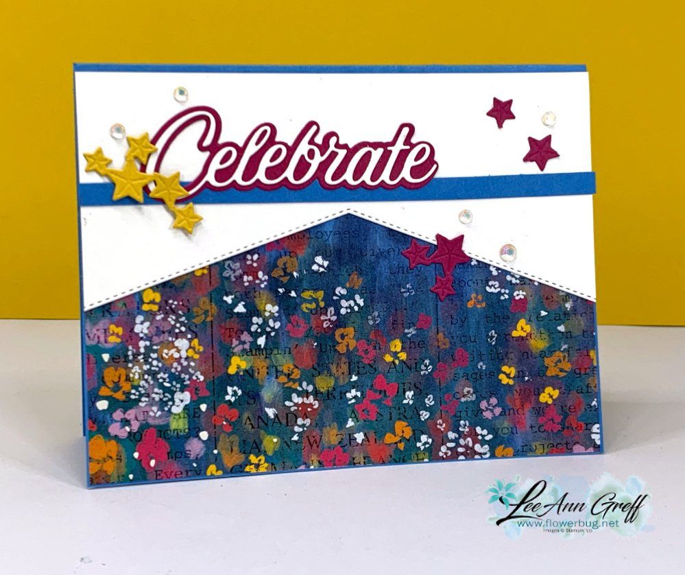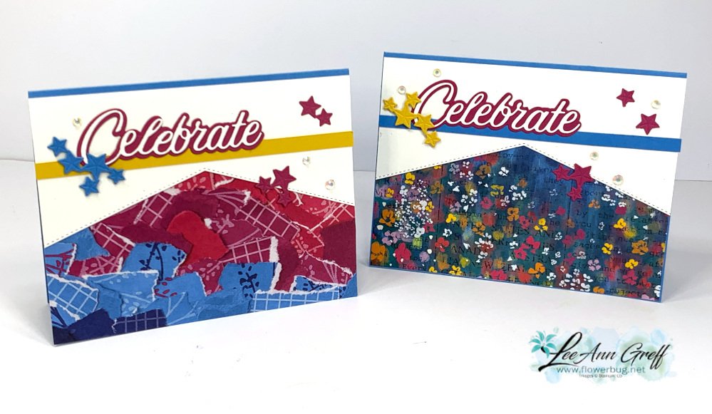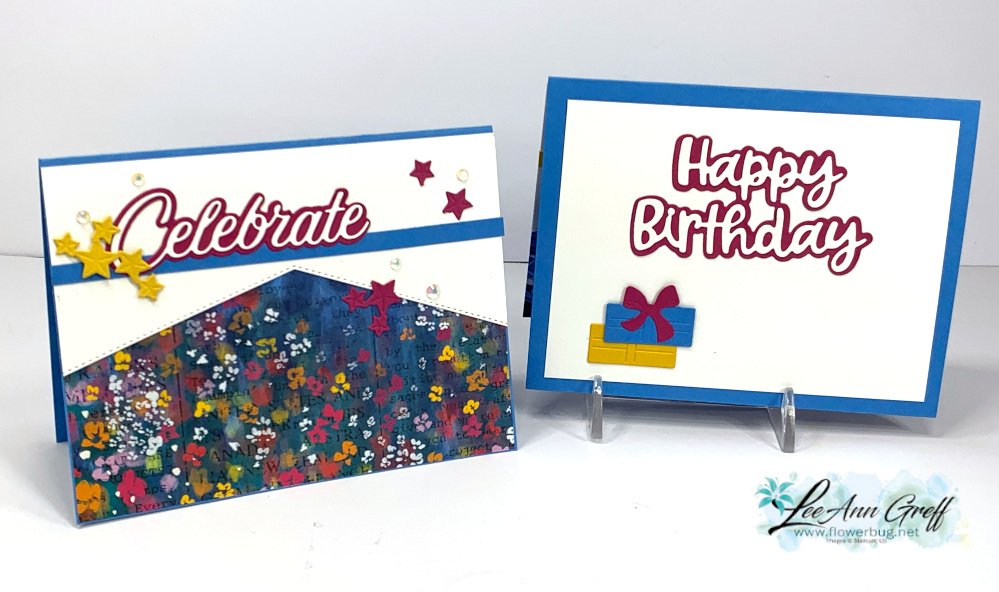 Here are both cards I shared; each with a different piece of the Masterfully Made CS.  As you can see I added a thin line of card stock to rest the 'Celebrate' die-cut on. I love the effect!