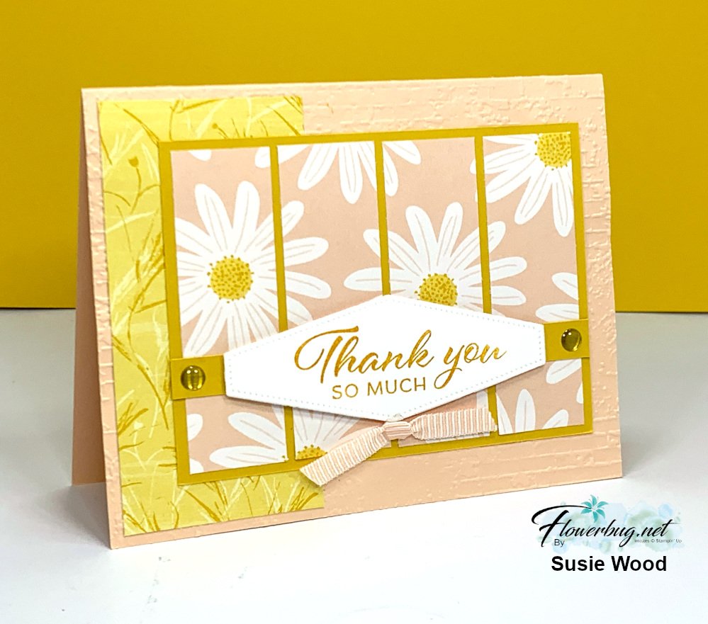 I love her layout; it really shows off the pattern of the daisy DSP.  That greeting die-cut is from the Nested Essential dies seen here.