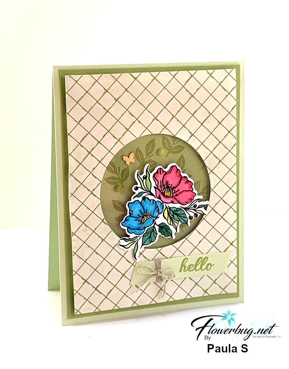 This next card was made by Paula. She created a window from her DSP layer, adding Window Sheet behind it and a die-cut flower from the Framed Florets bundle in front.