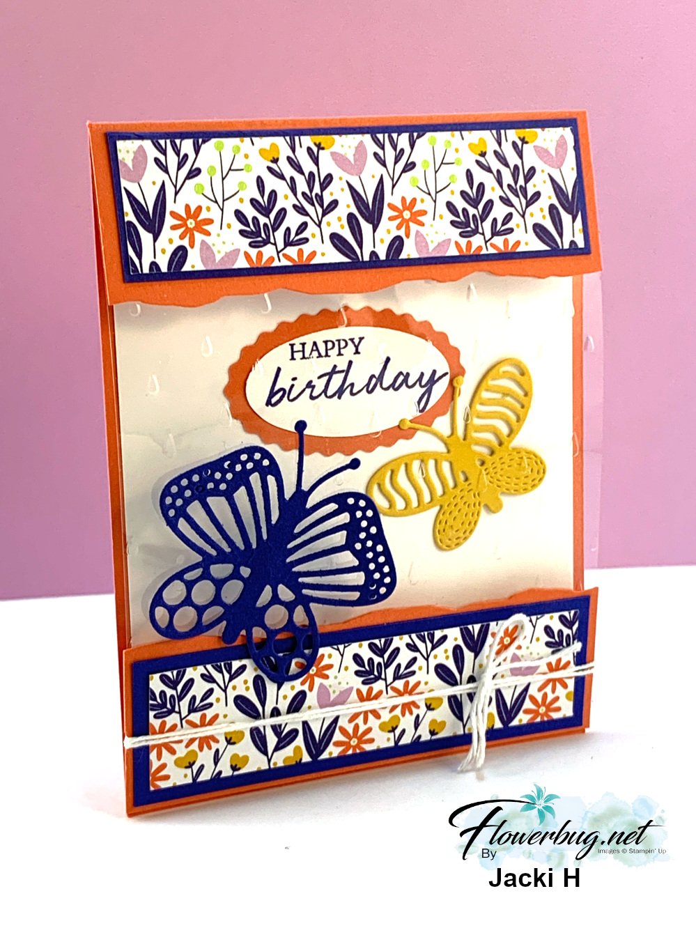 She is featuring the Butterfly Kisses suite here – the Butterfly Kisses 6" DSP and the Build a Butterfly dies.