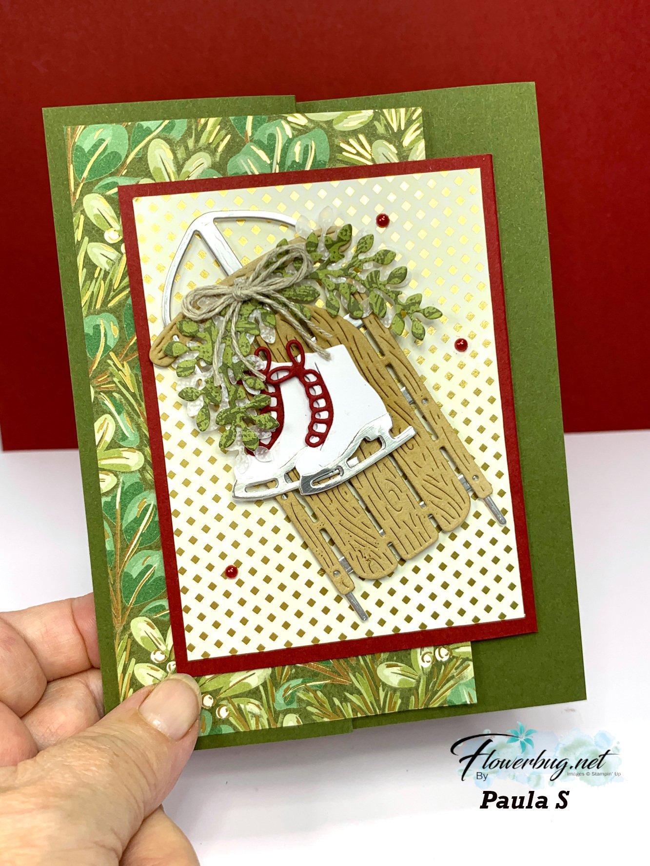 This first card is a fun fold and made by Paula. She created an incredibly beautiful card with the Sophisticated Sled bundle!