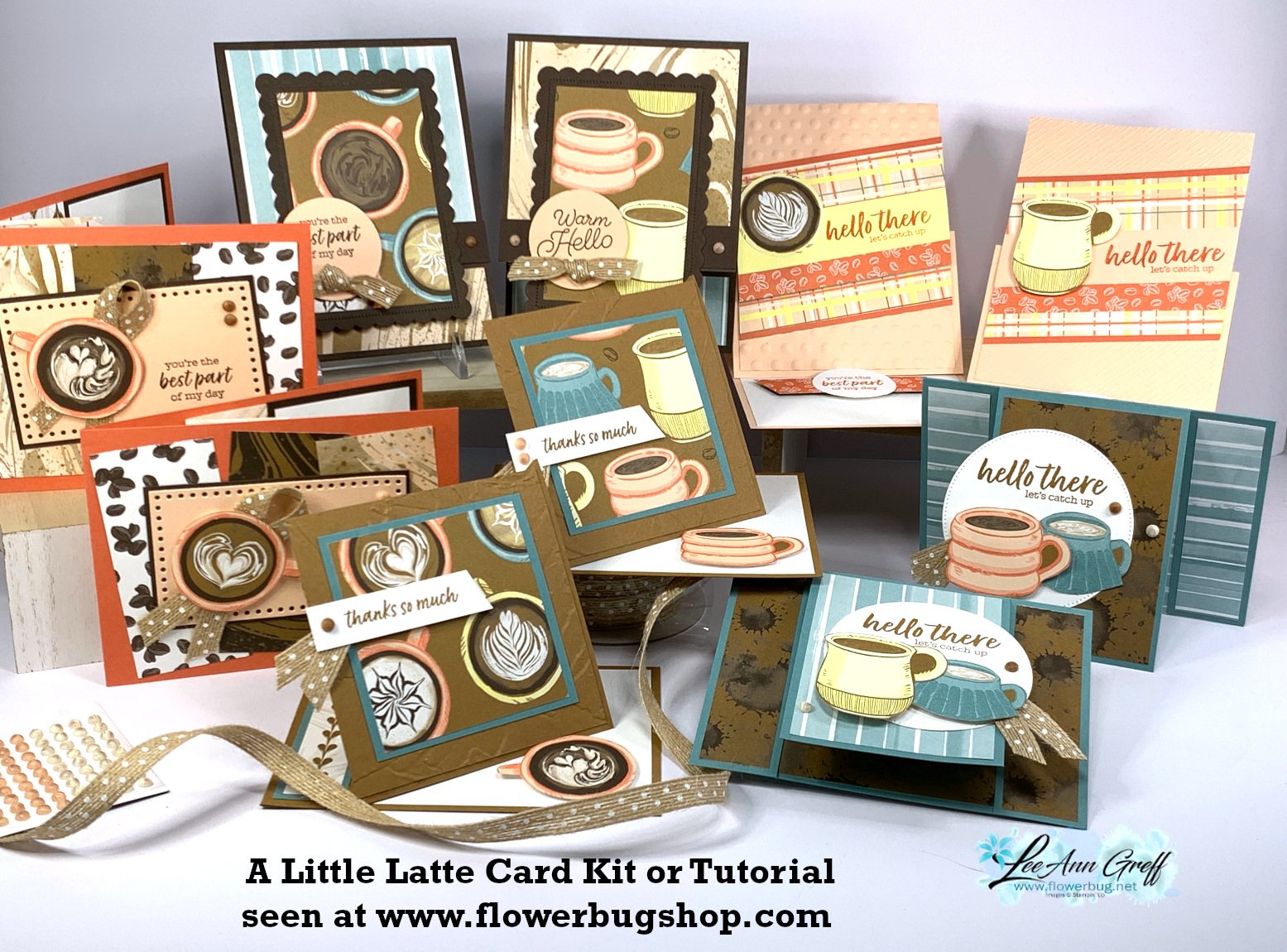 I am thrilled with the cards in this month's card kit! They are all unique fun fold card layouts and really show off the fabulous A Little Latte designer paper from our Online Exclusive products.