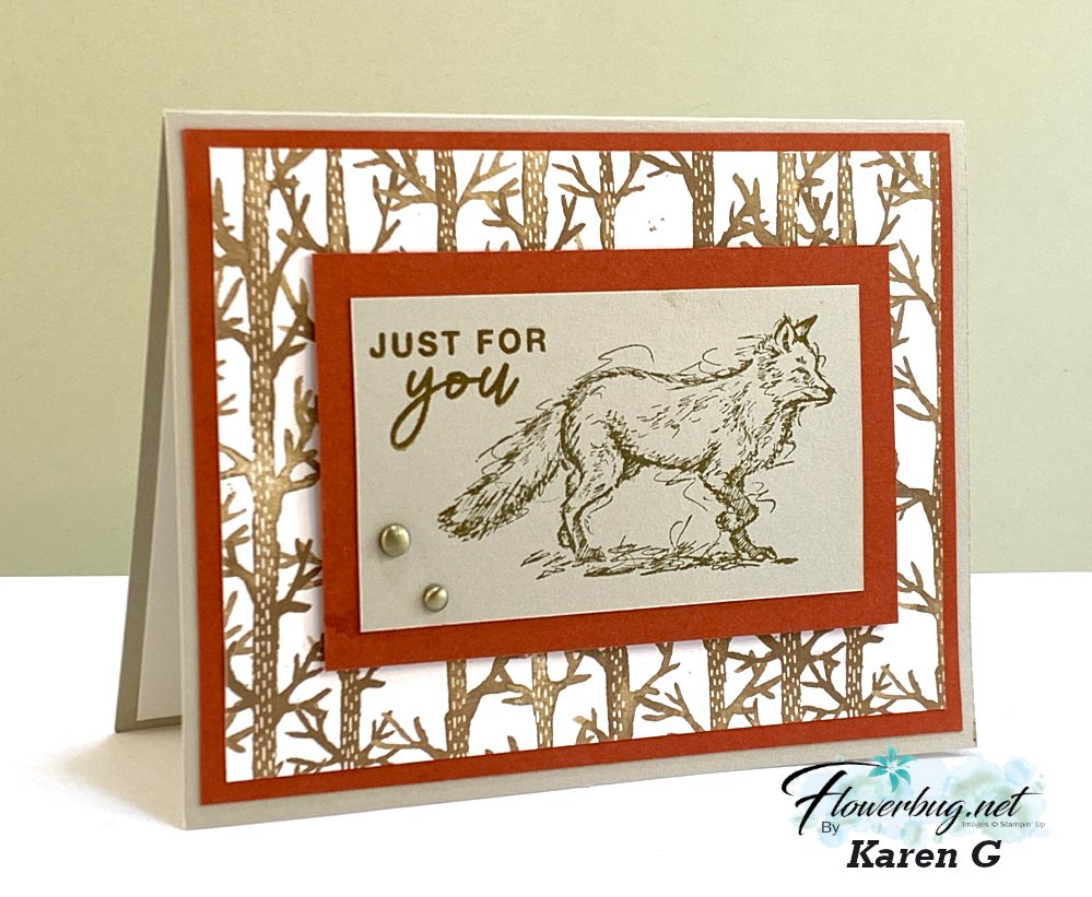 Her colors include Cajun Craze with Sahara Sand. I really like the images stamped on the Sahara Sand instead of our usual White or Vanilla.