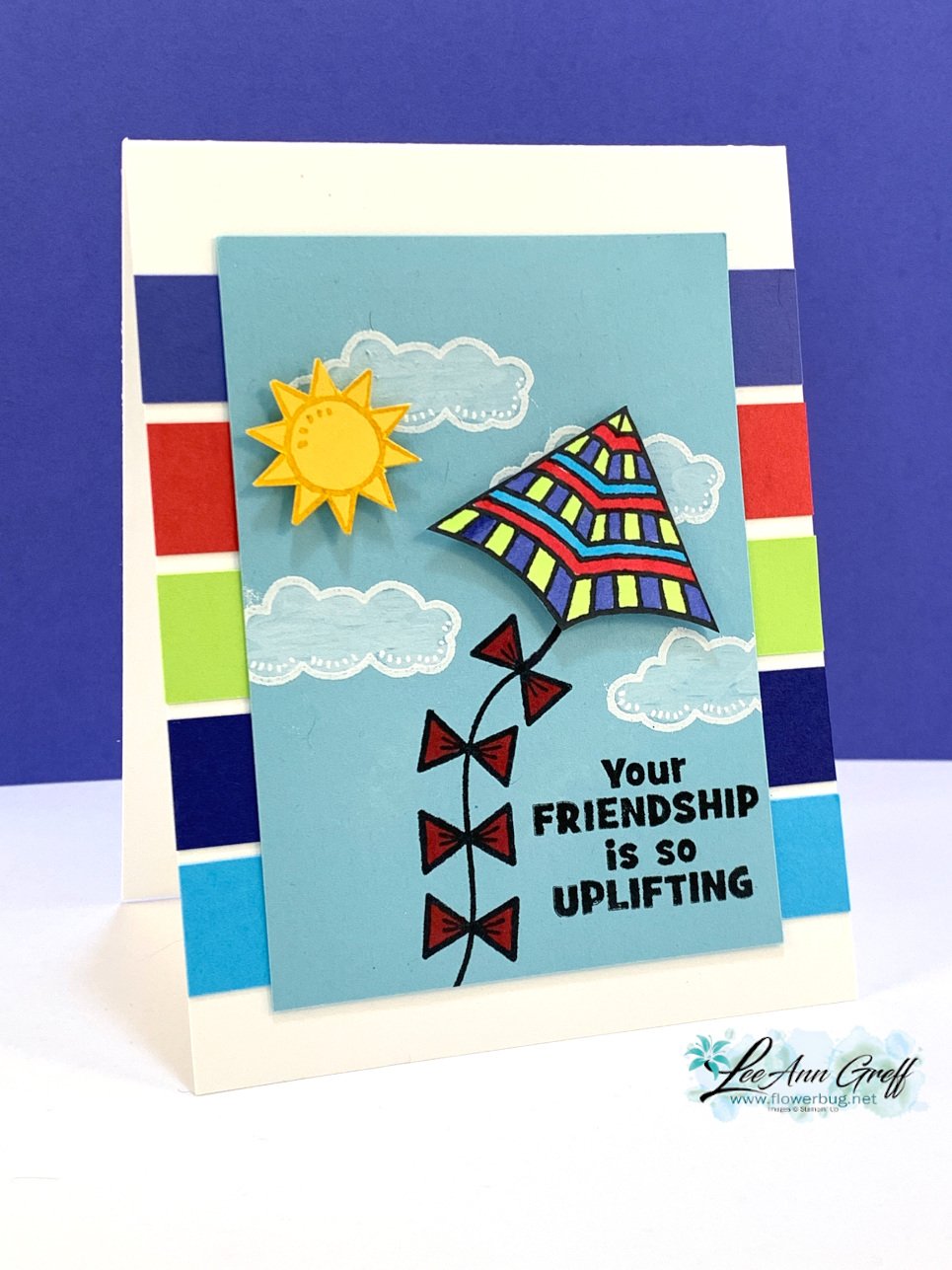 Here's a link to the video.  Or click on the photo below to watch how to make this card and two more using the Kite Delight stamp set!