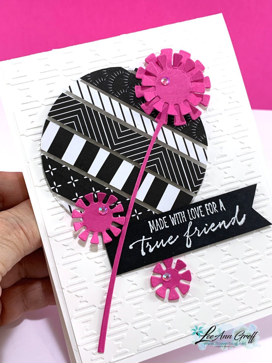 This first card is bright & colorful in Magenta Madness, Black & White.  I love a black & white card with a pop of color.