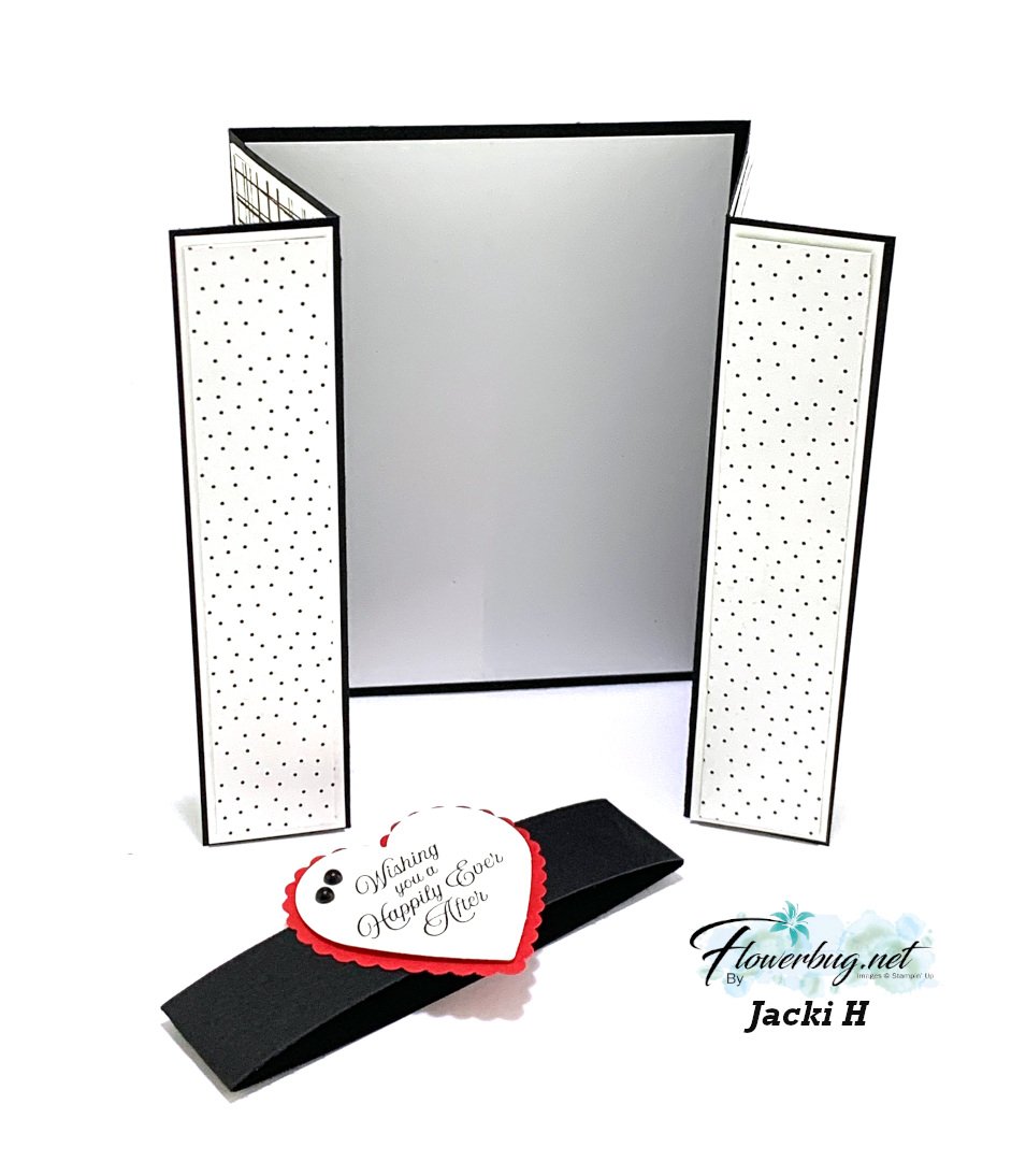 Next is a fun fold card made by Jacki using a striking pop of Red for this wedding card.