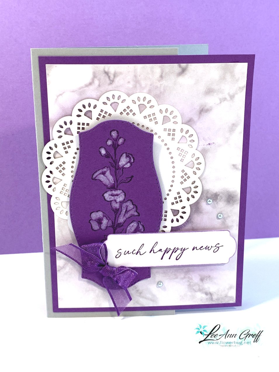 The background paper is the Simply Marbelous Sale-a-Bration DSP that I added a bit of Highland Heather ink to.