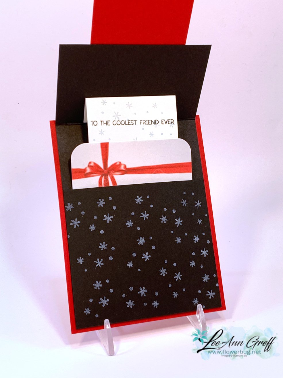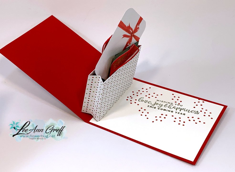 There's a fold inside that brings up the 'gift card' when you lift up the card front. I did use Thick White CS for this so it stands up to lots of use. Isn't it fun? It's quite easy too!