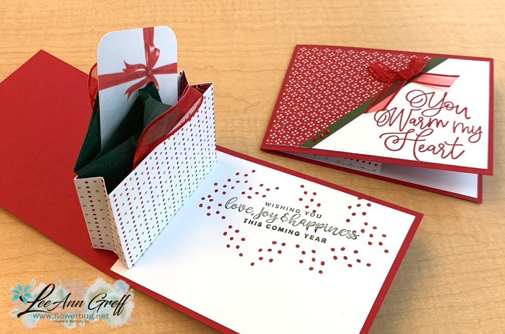 Here's the front view: I used the angled Heartwarming Hugs designer paper piece I cut off from this card I shared yesterday. I love it when I can use my paper efficiently!