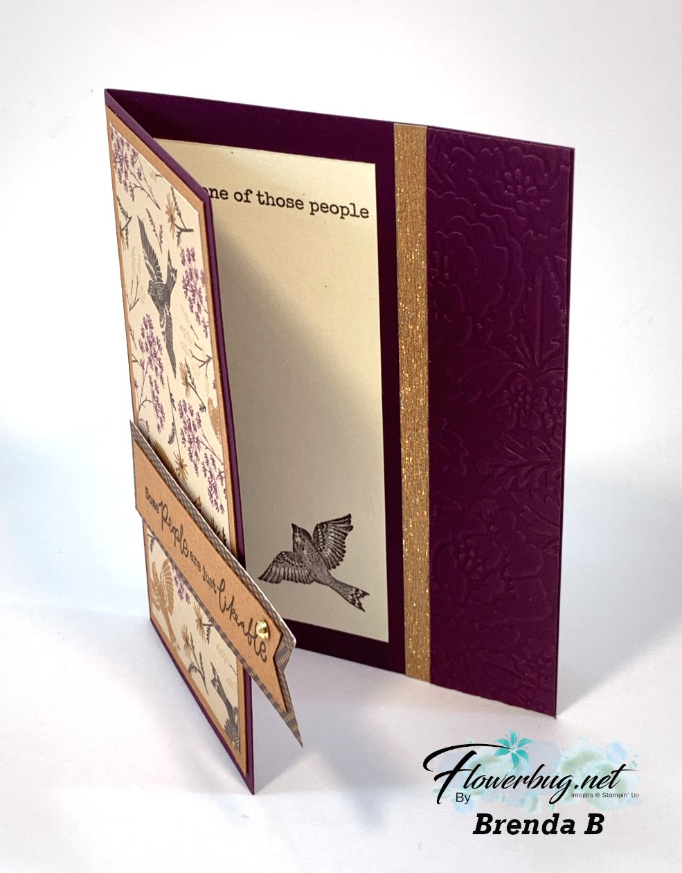 I like how she layered the greeting strip with another piece of this designer paper.  Look at the added detail of the thin strip of Brushed Gold paper.