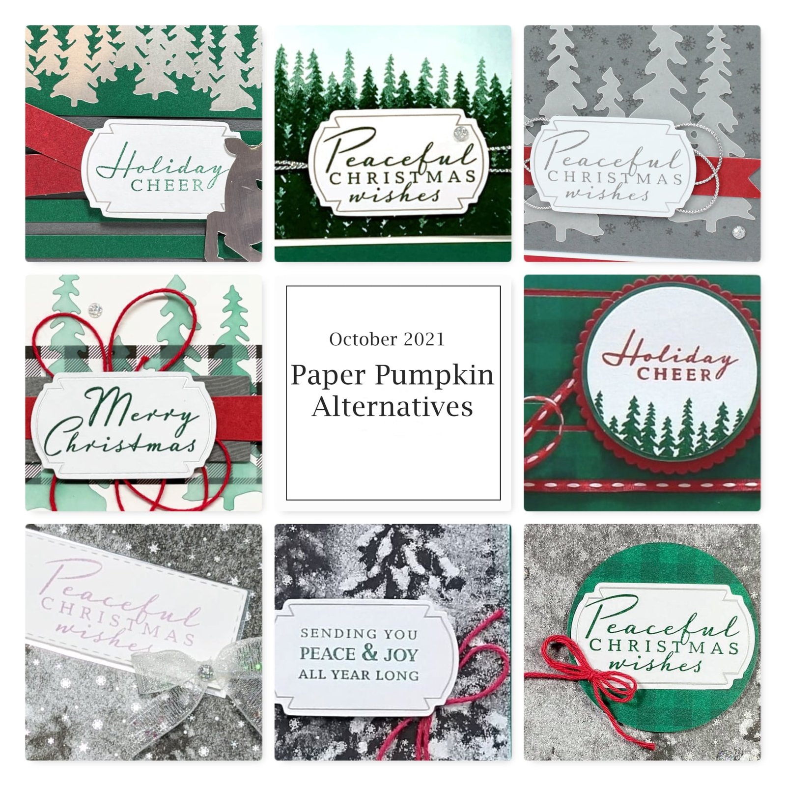 As you know I always come up with alternative designs each month. My Paper Pumpkin subscribers receive a PDF of 10 plus projects for each kit!  Here's a peak of some from the beautiful Peaceful Christmas kit we received in October.