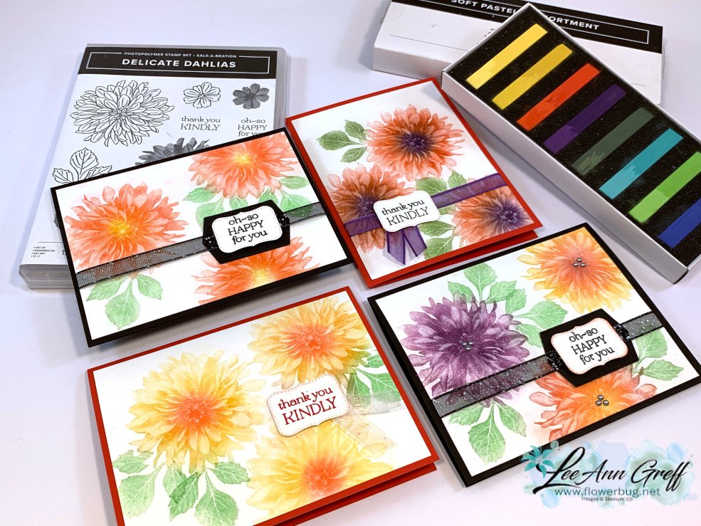 *I make sure to use only greetings in my kits to go so you can substitute what you already own. I used Sunny Sentiments, Biggest Wishes, Create with Friends sets here. *Inks are Misty Moonlight, Night of Navy, Bumblebee, Calypso Coral, Soft Succulent & Versamark.
