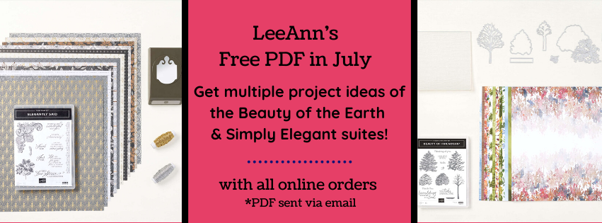 My free PDF Tutorial for July's online orders includes the Simply Elegant & Beauty of the Earth suites. Get it FREE with any online order placed in July!