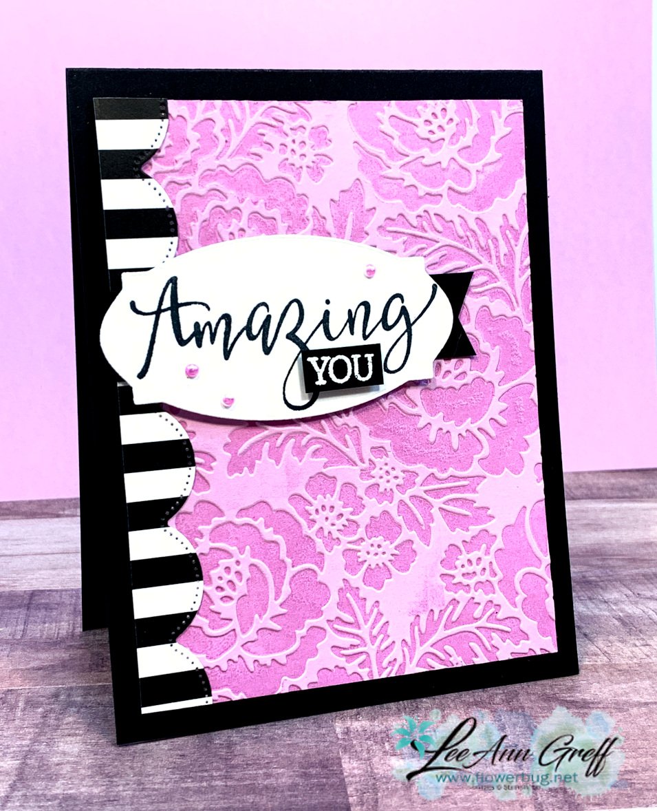 I loved the 'Inked Folder' technique so much I wanted to feature it on my card.  You can see how it's done in the video here.  And more examples featuring this Pretty Flowers embossing folder here.