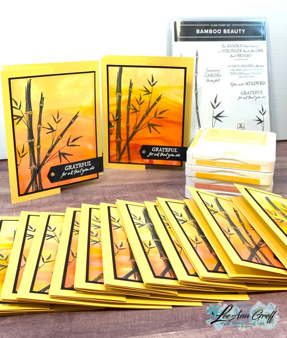 I created this striking card for a swap I participated in with some of my Demonstrator leader friends.  I wanted to highlight the beautiful Bamboo Beauty stamp set.