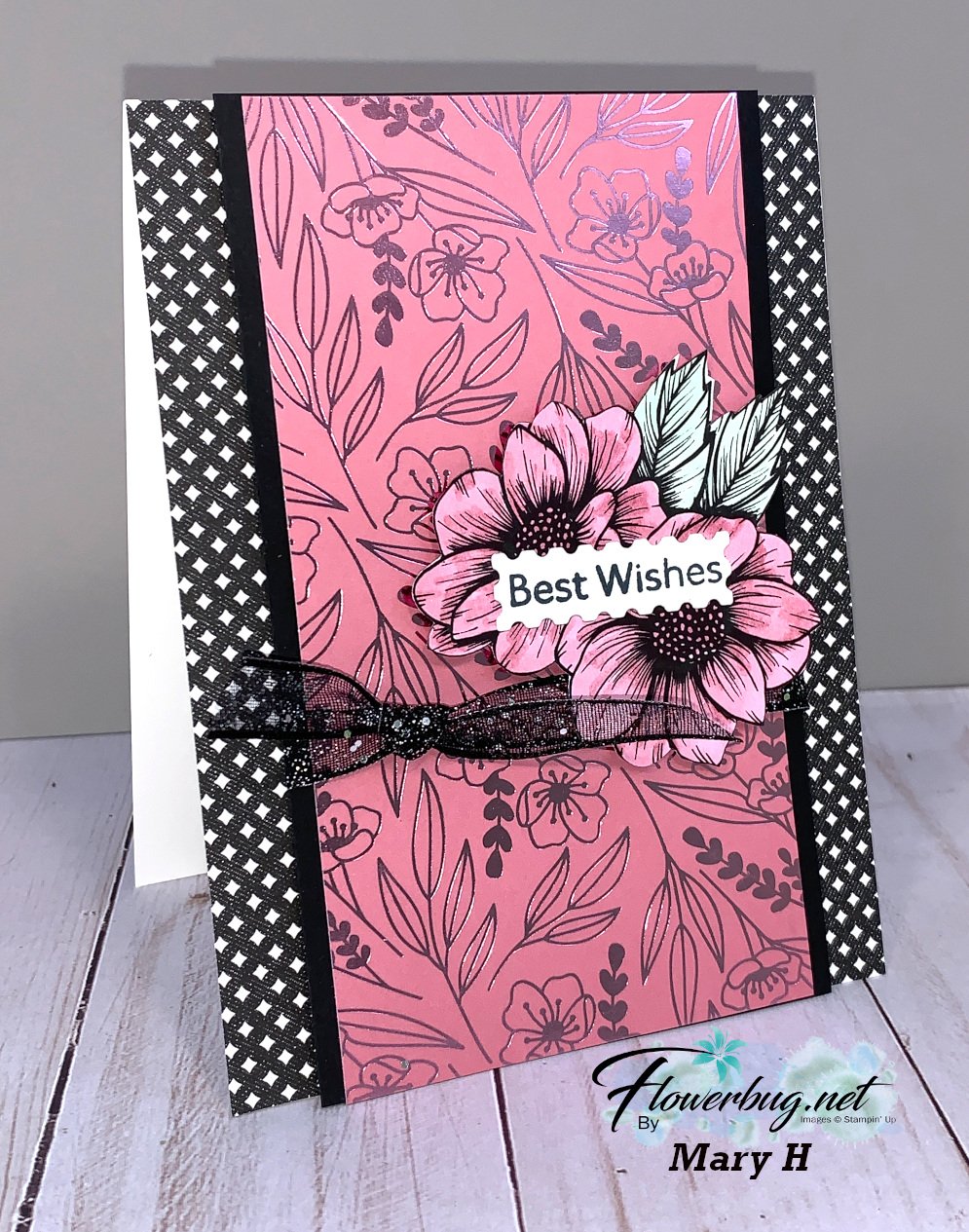 She fussy cut the flowers from the True Love DSP and colored them with Blends markers. The Best Wishes is from the Art Gallery bundle.