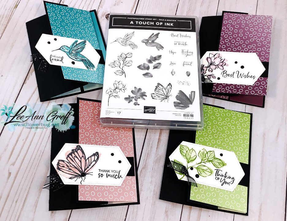 We made these pretty fun fold cards at my February card clubs! I think the A Touch of Ink stamp set is incredibly versatile! There was an option for everyone's needs.