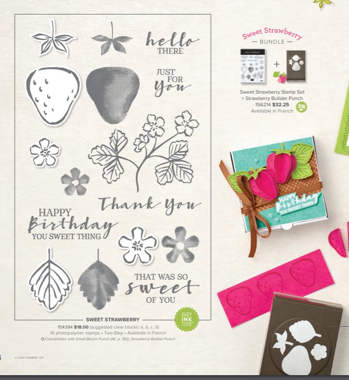 Here's the Sweet Strawberry bundle I used. I love that the punch has 4 parts that match the stamps! (You can tell which images coordinate with the punch; they're highlighted.) And notice how the fonts in both of these sets match?!!