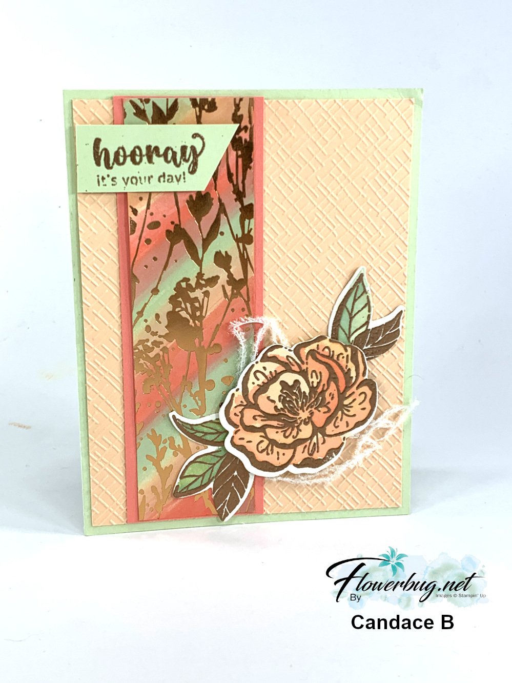 Candace chose to use the Irresistible Blooms bundle and the pretty Naturally Gilded specialty paper seen here.  These items are on the Online Exclusives site and available for a limited time.