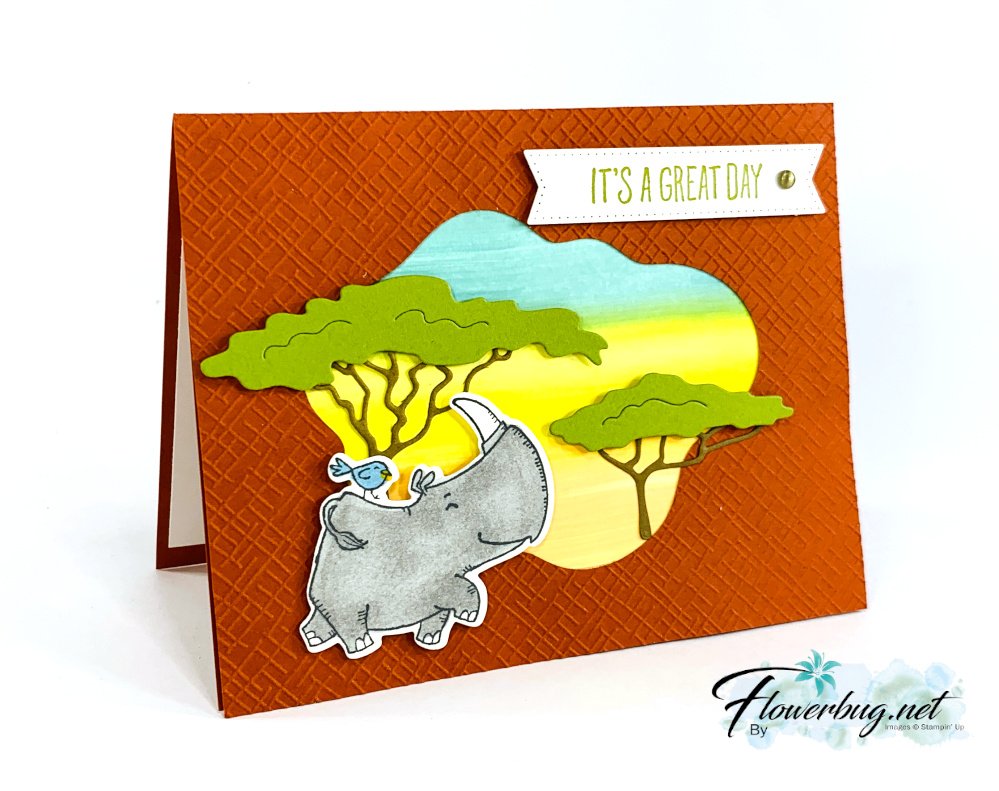 Next is a gorgeous scenic card made by Brenda. She also chose to use one of the new Online Exclusive products; the Rhino Ready bundle.