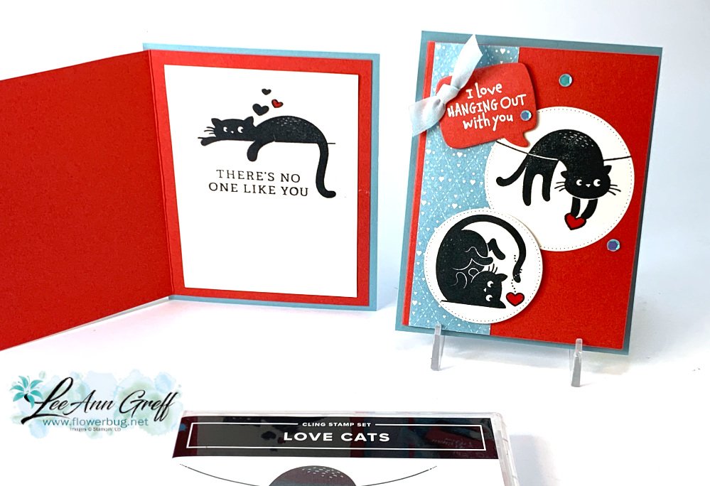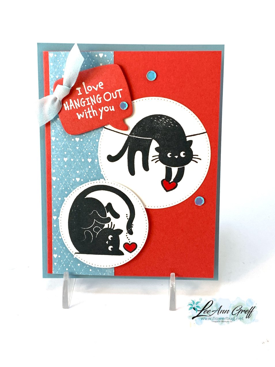 We made this CUTE card at my February card clubs.  It really shows off the Love Cats stamp set seen here.