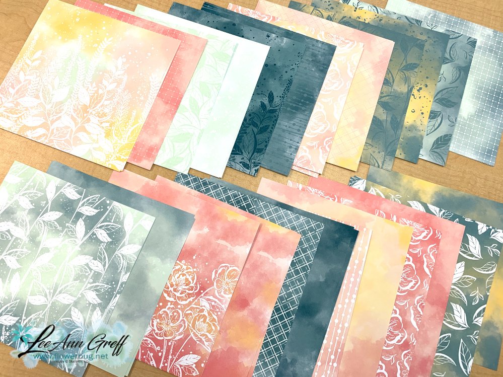 She made her own paper with the stamps in the set. She used Pretty in Pink, Night of Navy & Flirty Flamingo inks. She added die-cut gears from the Metallic Textured Specialty papers seen here.