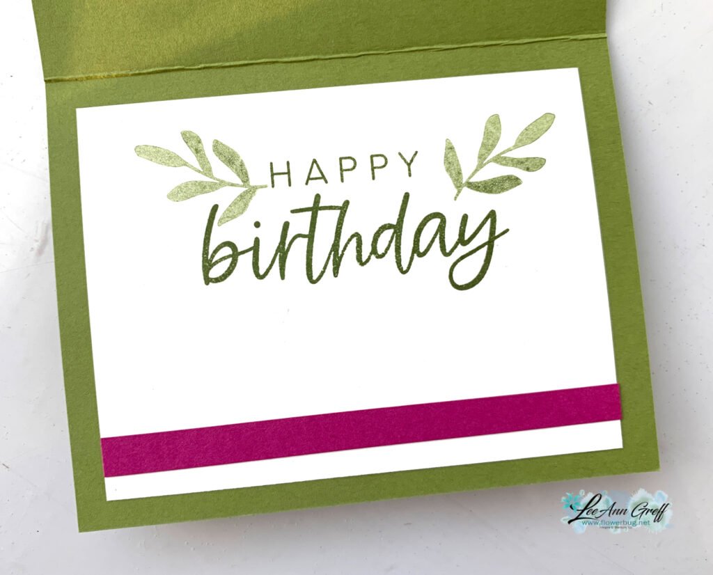 I also used the ‘With You in Mind’ stamp set for the inside: A thin 1/4″ strip of matching CS finished it off nicely.