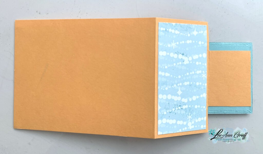 This card opens with a type of flip/flap feel. Here’s how we cut off the tabs on the card base. Once you score your card you’ll make a pencil mark from the top and bottom at 1″. Then trim off the corners.